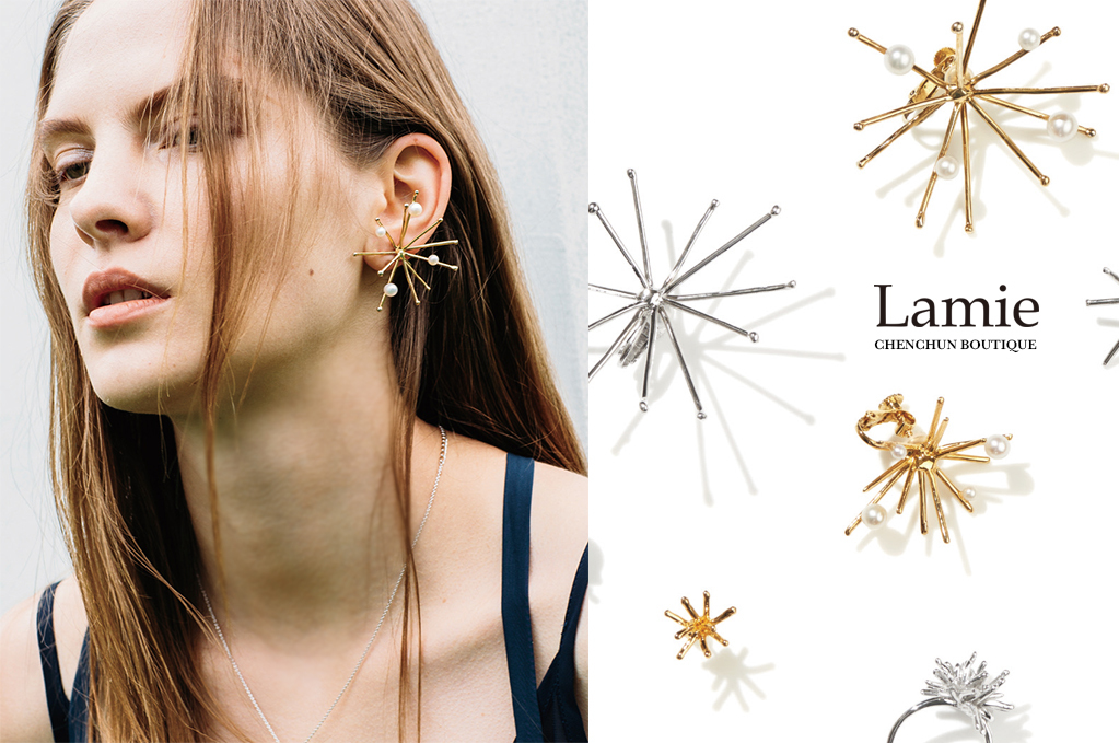 來自東京的 Lamie 珠寶設計師品牌,別緻而細膩的配飾,乍看之下如同一件件的雕塑作品,從作品中能看到不特定形狀,與獨特的不對稱感,保留手工的溫度,更顯獨特中的美 ,中島美嘉、新垣結衣、石原聰美、榮倉奈奈等各大日本女星皆是該品牌愛好者!